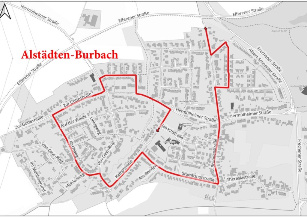 - Alstädten-Burbach Karnevalszug – 15:11 Uhr, ab Stotzheimer Straße: Karnevalszug der Ortsgemeinschaft Alstädten/Burbach (Zugweg: Stotzheimer Straße, Albert-Schneider-Straße, Wilhelm-Küppers-Straße, Willi-Mainzer-Straße, Stotzheimer Straße, Brunnenstraße, Stumbshofstraße, Kampstraße, Von-Geyr-Ring, Kirchweg, Zur Gotteshülfe, Hermülheimer Straße, Mariengartenstraße, Guderadisweg, Hermülheimer Straße, Kampstraße) Auflösung ca 18.00Uhr
