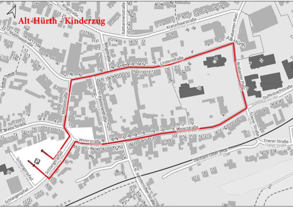 - Alt-Hürth Kinder Karnevalszug – 10:11 Uhr, ab Kirmesplatz: Kinderumzug des Festausschusses Alt-Hürther Karneval (Zugweg: Kirmesplatz – Schlangenpfad – Weierstraße – Brabanter Platz- Lindenstraße – Mittelstraße) Auflösung ca 11.30Uhr
