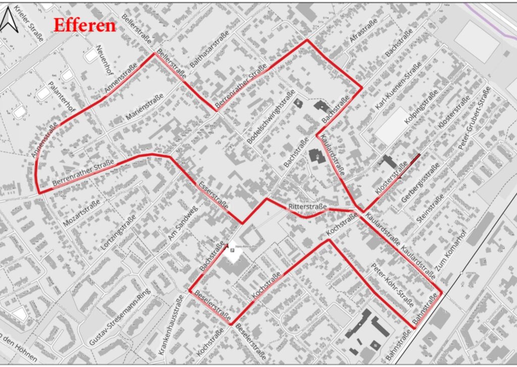 - Efferen Karnevalszug – 14:00 Uhr, ab Klosterstraße/Kolpingstraße: Karnevalszug der Ortsgemeinschaft Hürth-Efferen (Zugweg: aus der Klosterstr. rechts auf die Kaulardstr. – Bachstr. – Leopold-Freter-Str. – Berrenrather Str. – Bellerstr. – Annenstr. – Berrenrather Str. – Esserstr. – Bachstr. – Ritterstr. – Kaulardstr. – Bahnstr. – Jülichstr – Kochstr.- Beselerstr. – Bachstr.) Auflösung ca 18.00 Uhr