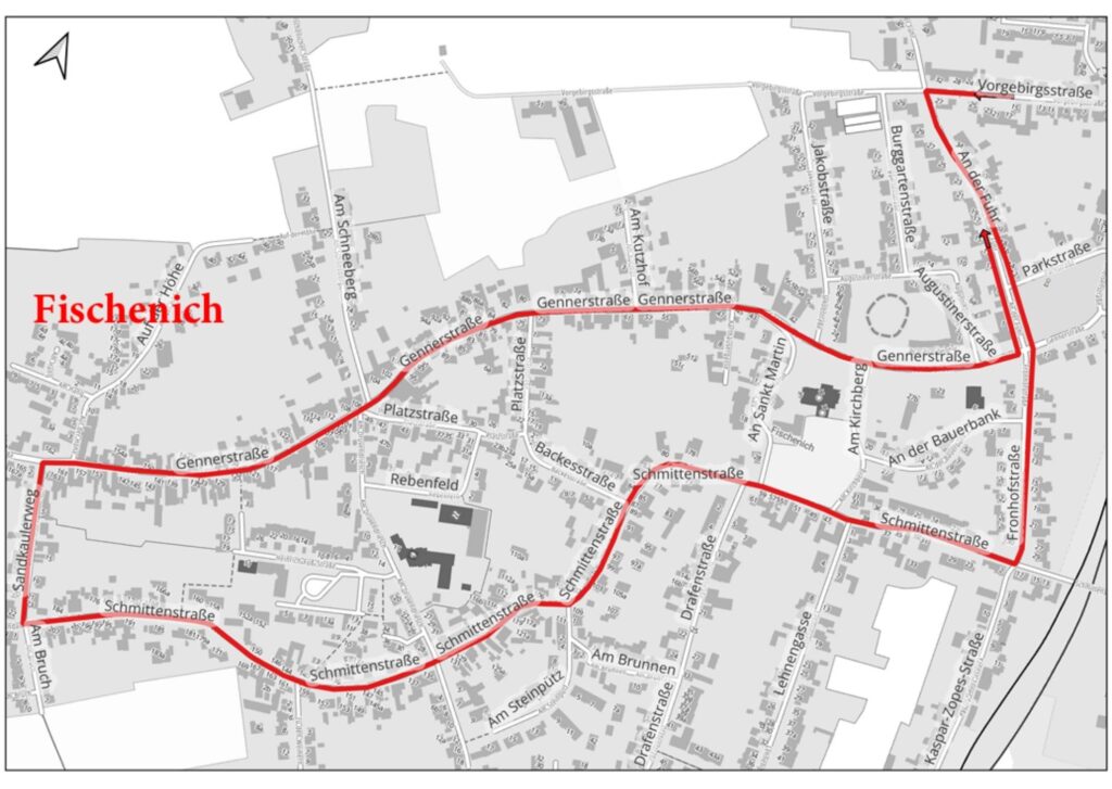 - Fischenich Karnevalszug – 14:11 Uhr, ab Vorgebirgstraße/An der Fuhr: Karnevalszug der Dorfgemeinschaft Fischenich (Zugweg: Fronhofstraße – Schmittenstraße – Sandkaulerweg – Gennerstraße – An der Fuhr) Auflösung ca 17.00Uhr