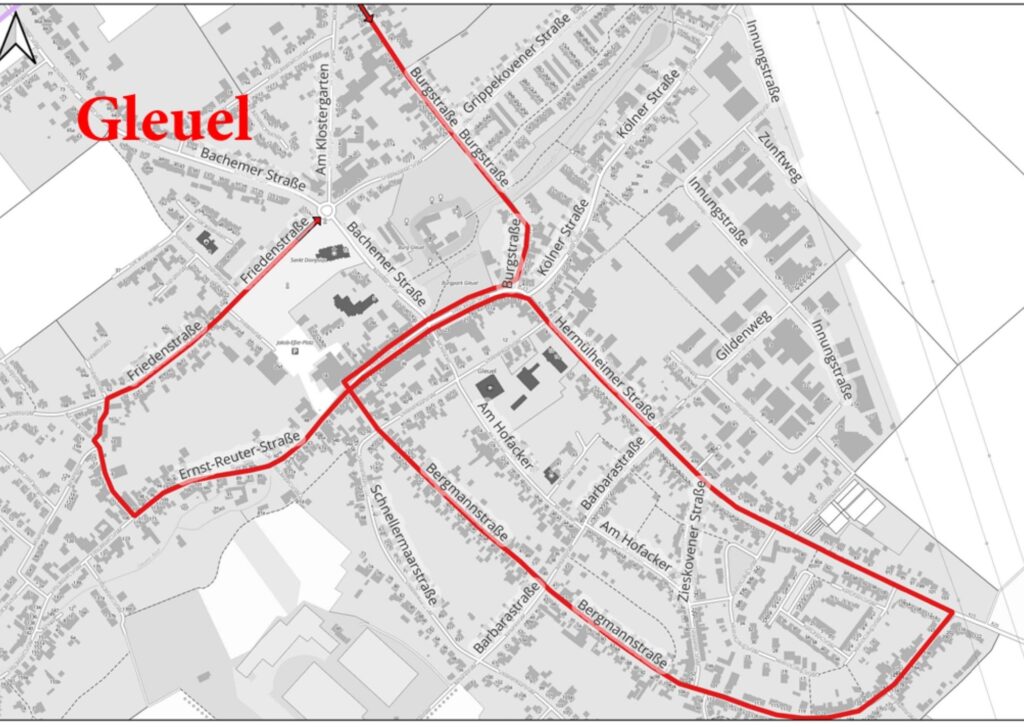 - Gleuel Karnevalsumzug – 14:00 Uhr, ab Burgstraße: Karnevalszug der Ortsgemeinschaft Hürth-Gleuel (Zugweg: Burgstraße – Ernst-Reuter-Straße – Bergmannstraße – Hermülheimer Straße (K 25) – Ernst-Reuter-Straße – Auf dem Kramberg – Friedenstraße – Bachemer Straße – Grippekovener Straße) Auflösung ca 17.30Uhr